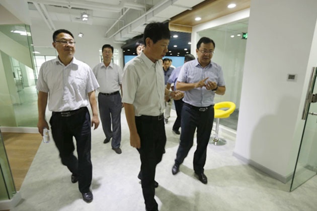 2014年8月30日人社部就業(yè)促進(jìn)司副司長 尹建堃 一行到盛天彩調(diào)研指導(dǎo)工作